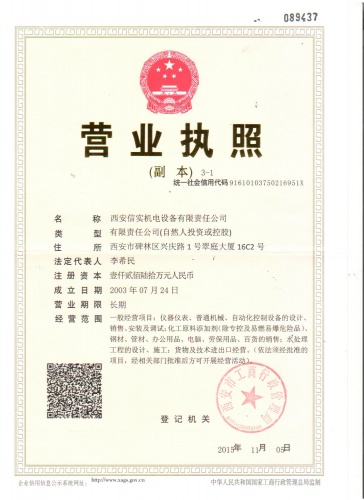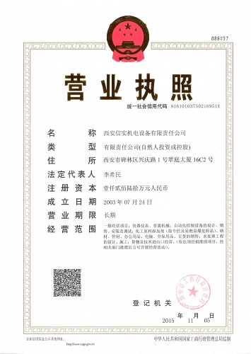 2015年11月22日,西安信實機電設(shè)備有限責(zé)任公司完成了營業(yè)執(zhí)照、組織機構(gòu)代碼證、稅務(wù)登記證的“三證合一”更換手續(xù),領(lǐng)取了“一照一碼”新營業(yè)執(zhí)照。